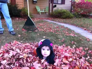 I can no longer deny that it is fall with the leaves changing colors and falling to the ground. This was the first year Rissa got to really enjoy playing in them! She tried to rake them, threw them, and jumped in the pile. She even tried to bury her daddy in the leaf pile!